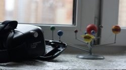 The user's task is to look around and observe space, how different bodies fly you. It's going really well. No dynamic. It's not very bright on the screens, but the glasses are different.
